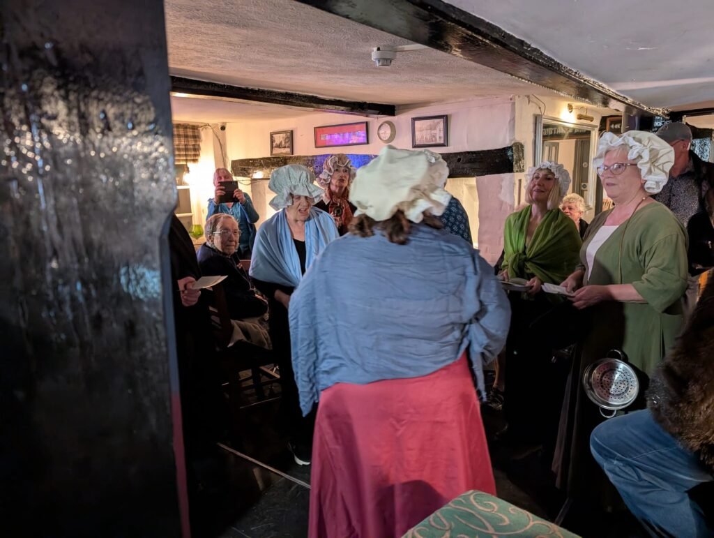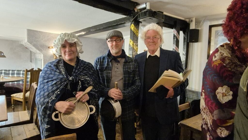 On Saturday 8th November 2025, the Walkern History Society invaded the White Lion to tell the story of Mary “Poll” Andrews, Walkern’s 1848 Cuckold Riding and the riot that ensued. The immersive story-telling event was held at the White Lion pub. Professional story teller, Amy Pryke played the role of Mary Andrews, whose spiraling life caused the events.