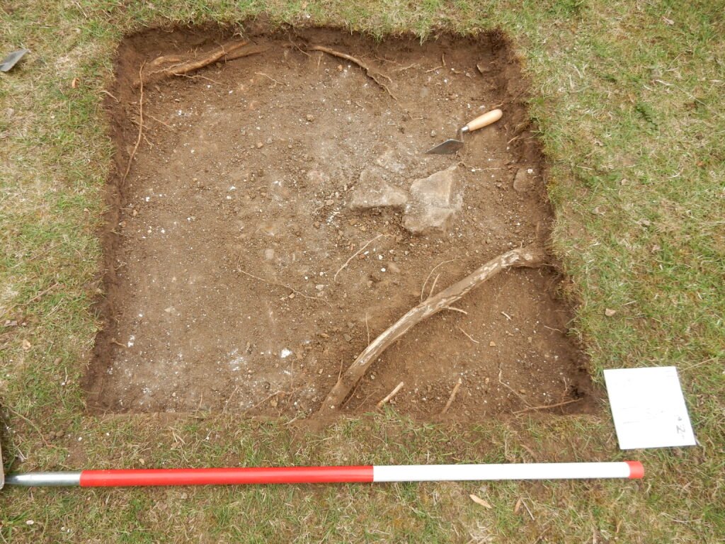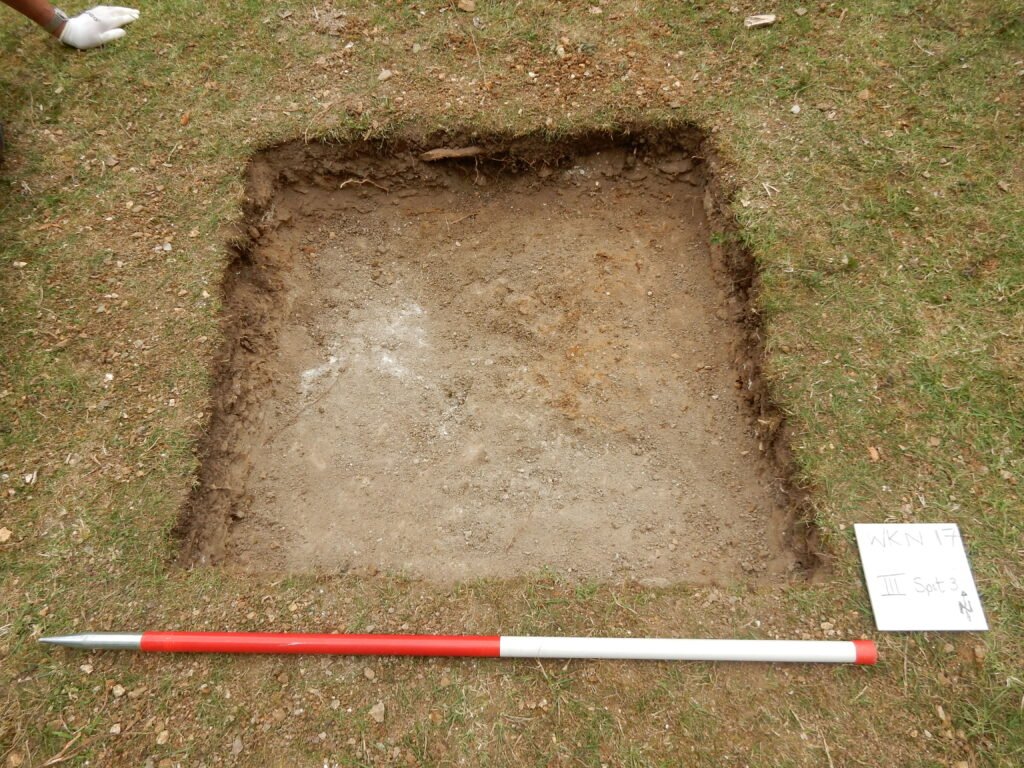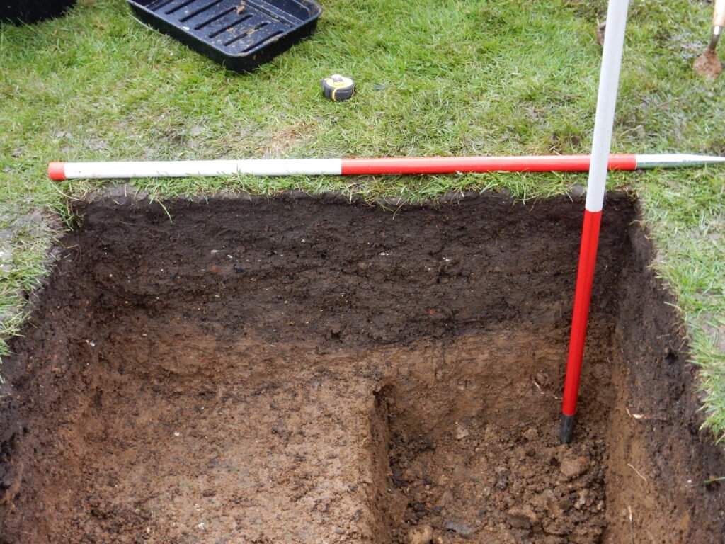 To ensure that the natural has been reached, a ‘sondage’ may be dug. This is a smaller section that digs deeper, reducing the amount of digging while confirming no evidence of human activity.